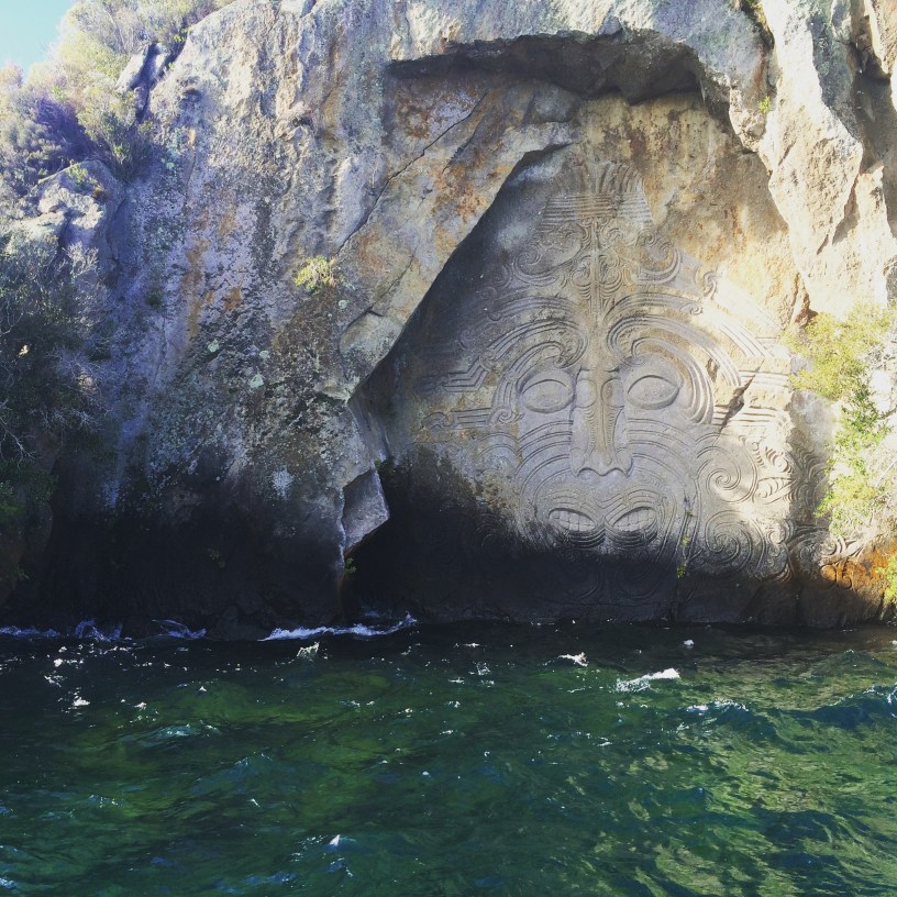 Taupo is absolutely beautiful and is the main town on the banks of Lake Taupo, New Zealand’s largest lake. We went on a boat trip to see some famous Maori carvings in the lake; visited the Huka falls and went to yet another geothermal park (they honestly never got old – we loved them all!). Again, we used the local iSite to book our boat trip. We just booked it on the day of the trip which I think was a good option because it was winter so we wanted to see what the weather was like before committing to a couple of hours on a boat. I think in the summer you would have to book in advance though; even in the winter the boat was packed! The carvings are so worth the trip and being in a boat gives you much more of a sense of how big the lake is (apparently it’s the same size as Singapore, which is crazy!).
